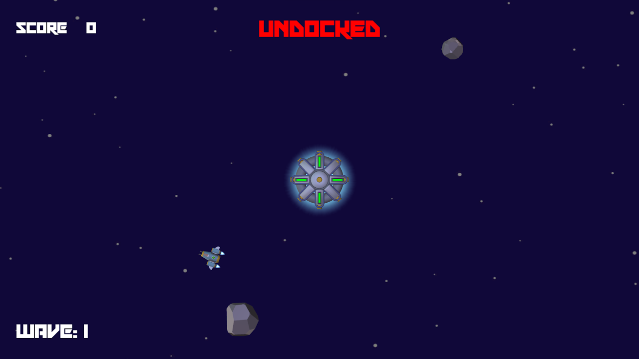 An Asteroid inspired game mixed with minor concepts from tower defense. The player must shoot asteroids to protect the space station, which can also be moved around by the player when they attach/dock themselves to it.